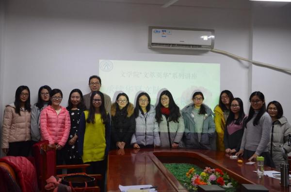 1123日,文理楼306举行“传承华夏文化,留住中国传统文明之根”讲座。本次讲座由文学博士、中国石油大学文学院副教授、古代文学专业硕士生导师、汉语国际教育专业硕士生导师王永豪担任主讲人,文学院2016级中国古代文学专业和汉语国际教育专业研究生参加此次讲座。