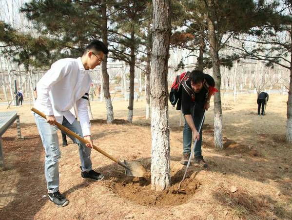 服务周最后一天恰值世界植树日,学生会还组织了全体志愿者学生于校园内共同栽培“雷锋&Volunteer”之树,宣告志愿者精神誓言,在绿色与爱心的结合中进一步发扬雷锋精神。