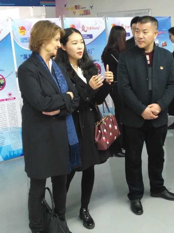 323日至25日,“中德未来之桥”青年领导者合作洽谈会在青岛西海岸新区中德生态园举行。324日,团中央国际联络三处处长袁丽、青岛市团市委副书记韩昌丽、青岛西海岸新区团委书记冯洪珍陪同洽谈会代表团前往青岛西海岸新区青年之家旗舰店进行参观。我院研究生卢志敏、2014级英语专业学生姜文立在此次参观活动中担任“中德未来之桥”青年领导者合作洽谈会代表团的陪同翻译。