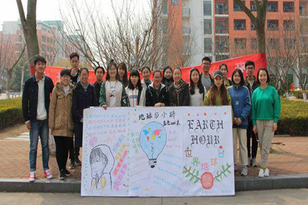 玉兰苑餐厅西门门口,17级英语专业“地球一小时,蓝色We来”主题团日活动正如火如荼地进行着,现场聚集近百人。为号召大学生减少能源消耗,唤起人们以实际行动应对全球变暖的意识,17级英语专业全体同学于3月24日展开“地球一小时,蓝色We来”宣传活动。