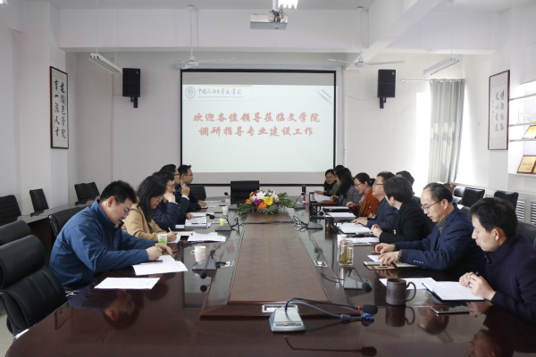 冯其红处长首先介绍了本次专题调研的背景、目的和调研内容,随后由韩淑芹副院长代表学院从专业建设的特色及现状、各专业的结构布局、专业内涵建设以及专业保障机制四个方面做了详细的汇报。提出了在学校“双一流”建设的背景下,学院面临新的机遇与挑战,应做到优化现有专业,注重专业间的交叉融合,突出行业、区域、校本特色,着力培养适应社会发展需求的应用型、复合型、特色型人才,增强专业的核心竞争力。在随后的专业建设具体问题交流中,王学栋院长从人才培养、教学研究以及学院专业发展的硬件建设等方面,指出了学院的实际情况并明确了以后的发展方向;张永宁书记提出在“双一流”、“新工科”的大环境背景下,积极发挥文学院专业的独特优势,为学校的学科建设、校园文化建设作出贡献;各专业负责人也结合本专业的实际就存在的具体问题进行了交流探讨。
