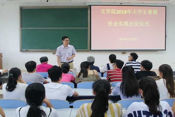 为引导学生积极参与社会实践,发挥社会实践在人才培养方面的作用,7月18日,文学院于南教211举行了2018年大学生暑期社会实践出征仪式。本次出征仪式由团委书记赵振华主持,校团委副书记孙启龙,学院党委副书记邹维忠,辅导员杜文倩、于露、赵延升,兼职团干部,各社会实践队学生参加。