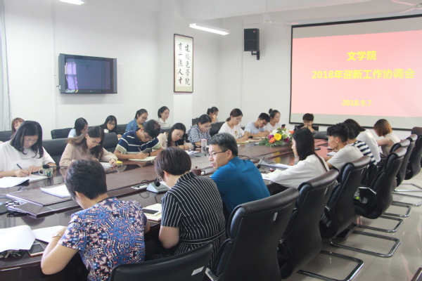 9月7日下午4点30,我院于文理楼358召开文学院2018年迎新工作协调会,学院党委副书记邹维忠、副院长孙大满、韩淑芹以及年级辅导员、参与迎新工作的教师,各学生组织、班级负责人参加了会议。