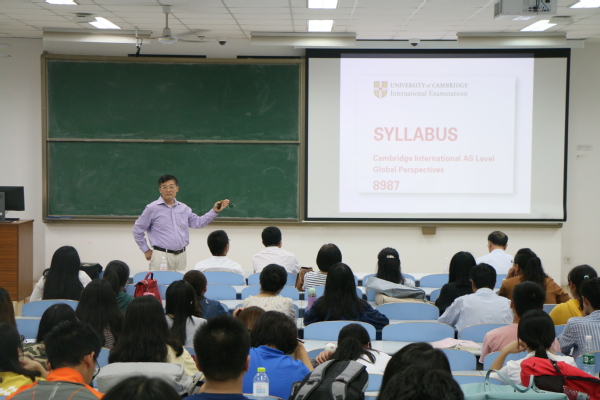 讲座内容紧绕着培养学生未来核心素养的主题,韩宝成就国家需求,社会发展,课程要求和人才评价方案四个方面展开阐述外语教学未来的发展方向。提及发展,他就OECD的一篇报道分析了在现代技术发展对部分职业的冲击下,社会对未来学生职业技能的要求,他说道:“以目前教育环境中较受重视的记忆单词为例,比起会背,会用更加重要”。韩宝成将目前国家教材的统一标准进行分析,发现了现今国家对于外语人才能力的要求发生巨大变化,不似从前那样单一地重视阅读理解与写作能力,如今企业更加重视学生的国际视野,跨文化能力和分级解决问题的能力,国际视野尤为重要,对此,他引用了周有光先生的一句话进行强调,“要从世界看国家,不要从国家看世界”。由于现在社会对学生能力的要求变得更加全面具体,北京外国语大学中国外语测评中心推出了国际人才英语考试,将学生外语学习的发展目标明确化,面向职场考评出专业人才,韩宝成指出,国际人才英语考试的目的在于:服务职场,面向职场,聚焦沟通,重在应用。在用国才各级考试材料分析了不同阶段对学生的要求后,韩宝成回答了在场部分学生了问题,对于在国才考试同英语四级、六级考试冲突中如何进行权衡选择的问题,他将不同考试的目的和作用进行比较,强调在准备考核时目标明确,有前瞻性的重要性。答疑结束后,讲座在大家的掌声中正式结束。