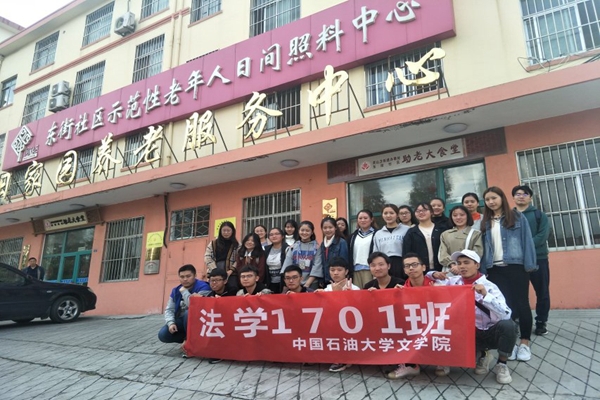 上午8:00,全体成员一同前往红日家园养老服务中心,到达之后,许多老人还在休息,于是大部分人领取了清洁用具去了三四层打扫卫生。10:00,打扫完毕的学生回到二楼,陪老人说话,听老人讲过去的时光,听他们诉说这个重阳节自己心中的种种感慨。学生之中有人滔滔不绝,听得老人笑容满面,有人坐在老人身边,用安静的陪伴传递温情。在正午耀眼的阳光中,大家分别为老人表演节目,有人用《外婆的澎湖湾》带来温情回忆;有人一曲《山丹丹花开红艳艳》唱红了奶奶的眼睛;来自新疆的男孩带来了民族舞蹈。在表演完《北京石油学院学生之歌》后,老人们收到了学生们的贺卡,大家将祝福送到爷爷奶奶手上,挥手告别。