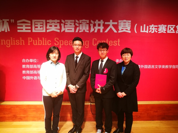我校由文学院赵春霞和孙烨两位老师带队的来自各专业的6位选手组成的代表队参加了此次全国大学生英语挑战赛山东赛区比赛。其中英语演讲比赛在烟台大学举行,经过三轮激烈的角逐,我校2016级化学工程及工艺专业孙浦华同学脱颖而出,成功进入决赛并最终获得一等奖。2017级经济学专业周家璇同学获得此次比赛的三等奖。同时,英语写作和阅读大赛也在山东师范大学拉开帷幕,我校2016级工业设计专业刘诗畅同学和2016级财务管理学专业孙琳同学获得阅读比赛山东赛区三等奖。2017级应用化学专业黄博健同学获得写作比赛山东赛区三等奖。2017级行政管理专业董雪琪同学获得写作比赛山东赛区优胜奖。