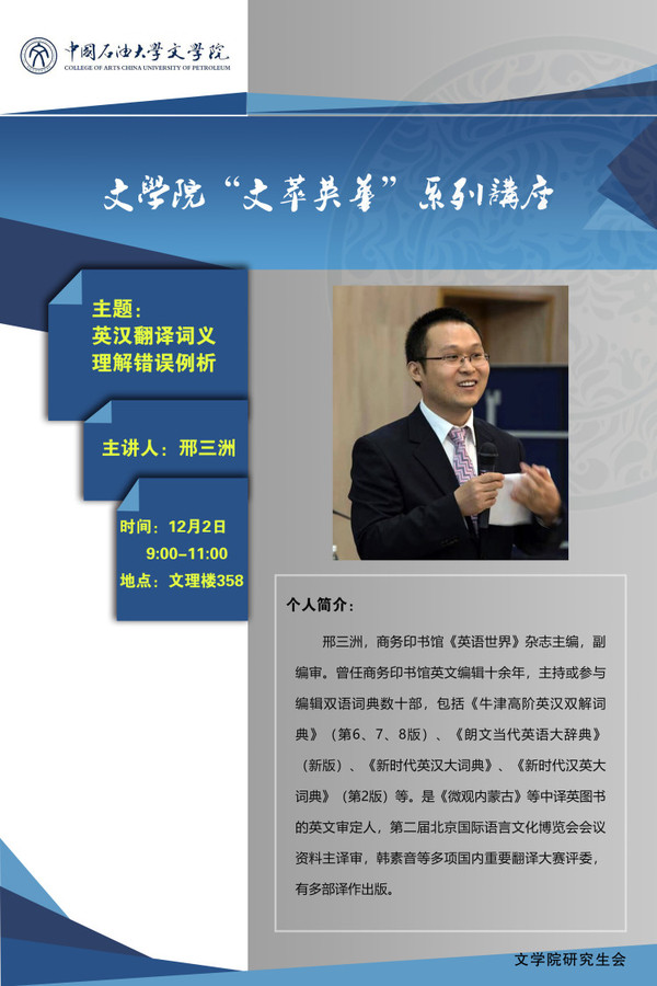 【学术讲座预告】英汉翻译词义理解错误例析