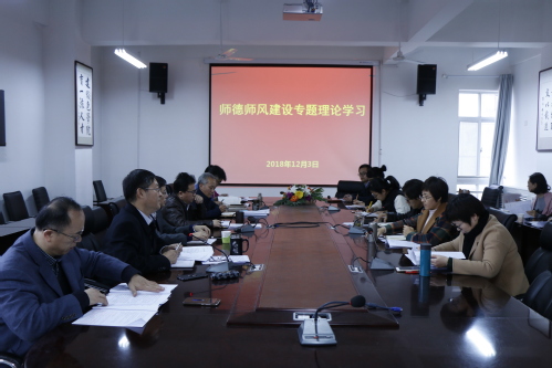 12月3日,文学院党委召开师德师风建设专题理论学习,党委教师工作部部长姚成郡、学院党委中心组全体委员、学生党总支、各教工党支部等相关人员参加了会议,会议由党委书记张永宁主持。