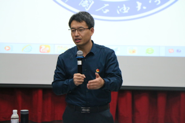 团校第一课正式开讲,校团委书记张展以《做一名合格的共青团员》为主题为学员们上团课。“五四的火炬,唤起了民族的觉醒”,张展由团歌展开,带领同学员们回顾了近代中国的屈辱历史、重温了五四的历史根源。他详细讲解了什么是共产主义、什么是共产主义青年团以及中国共青团与中国共产党的关系等基础问题。紧接着,他以夏明翰烈士、陈若克烈士、杨靖宇烈士的英勇事迹为例,为现场成员讲述了革命战争时期几千万的青年人为夺回了国家的独立和尊严作出的牺牲和贡献;号召同学们要有自己的判断力,坚决同历史虚无主义言论作斗争;强调新时代共产主义青年团员应该对马克思主义思想、中国共产党以及中国道路要有自信。随后,张展又从经济、教育、医疗、治安、民主、自由、人权七个方面谈了东西方的对比,用生动具体的事例介绍了当代中国的发展成果。最后,张展结合中国石油大学杨光华校长、王德民院士等优秀师生学子的故事,激励同学们要以优秀校友为榜样,传承石大精神,勇担时代重任!