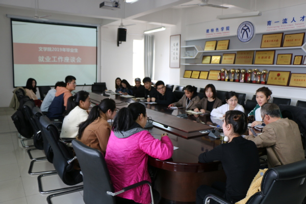 3月27日,文学院2019年毕业生就业工作座谈会在文理楼358召开,会议由文学院学生工作办公室主任梅琳主持,文学院党委副书记邹维忠、班主任代表、本科2015级辅导员杜文倩、毕业班主要学生干部参加。