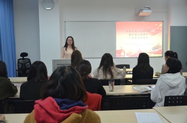 会议伊始,梅琳询问同学们的学习和生活情况,并对目前学习、工作中暴露出的问题与同学们进行交流,她希望同学们能够尽快提高自己的能力,让自己的能力与自己的学历相匹配。同时她也督促各位同学尽早做好职业规划,珍惜时间,努力增强自身实力,使自己在未来的就业中更具竞争力。同时梅琳还提醒同学们遵守学校的各项规章制度,注意自身安全。随后叶薇组织同学们观看电影《建军大业》。2019年恰逢中华人民共和国成立70周年,4月23日将迎来中国人民海军建军70周年节庆,《建军大业》作为献礼建军90周年的历史片,讲述了中国共产党举行武昌起义并创建人民军队的故事。观影期间,不时有同学被先辈们的无私奉献和英勇牺牲而感动落泪。团支书管琪在观影结束后说:“这部影片告诉我们一个道理:坚定信念,向着目标一直前行,生活中要敢于发表自己的见解、敢于创新,或许你有一次是错的,但是吸取经验教训之后,你会获得更大的进步和成功!”