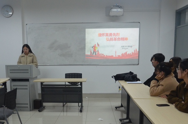 为缅怀革命英烈,继承和发扬老一辈革命家的优良传统,激发全体成员的爱国主义情怀,4月4日,文研18-1班开展了以“缅怀英勇先烈,弘扬革命精神”为主题的团日活动。本次团日活动由团支部书记白玉环主持,支部成员许梦瑶主讲,全体团员参加。