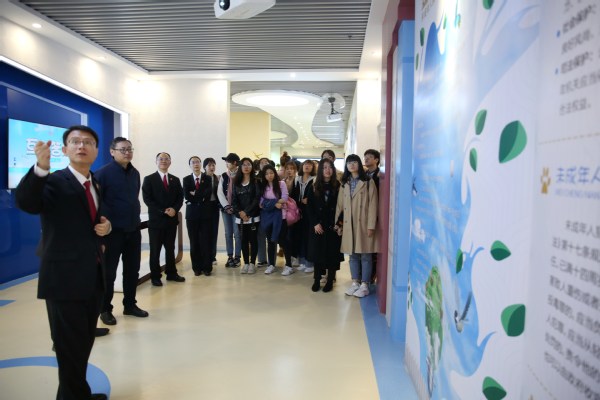 参观完展示中心后,师生们参加了黄岛区人民法院组织的知识产权保护座谈会,座谈会由黄岛区人民法院副院长李德海主持。李德海首先介绍了法院在知识产权保护方面所做的努力,知识产权以及知识产权保护的重要性,随后向学生们讲授了知识产权法学知识,并结合自身的经验介绍了知识产权学科的学习方法,进一步加深了学生们对知识产权的学习兴趣,丰富了对知识产权的认识。