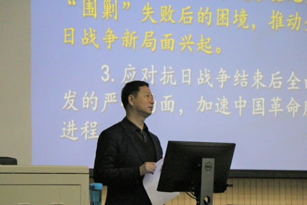 4月20日下午,文学院团校第六讲 中国共产党应对危局和困境的伟大实践及历史启示” 主题团课于南教楼100室举行。本次课程由山东省高校人文社会科学研究基地中国化马克思主义研究中心主任、马克思主义学院教授张荣华主讲,文学院2018级全体团校学员参与本次课程。