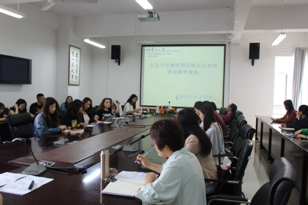 6月1日下午,文学院在文理楼358举办“立足于汉语应用及特点认知的语法研究视角”主题讲座。本次讲座邀请南开大学汉语言文化学院教授卢福波担任主讲,文学院副院长孙大满主持,汉语国际教育专业沈壮娟、伊强、张袁月、郭杨、马丽丽、门红丽等老师及本专业全体硕士研究生参加。