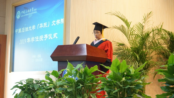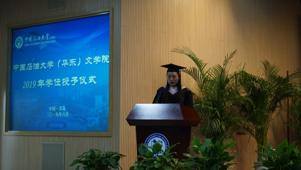 毕业生代表、15级汉语言文学专业本科毕业生黎梦雨发言,她分享了自己在石大的成长与收获,并代表毕业生们向学校、学院,老师和家长们表达了衷心地感谢,送去了真挚的祝福。