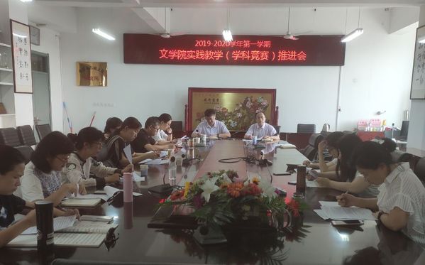 7月12日,为强化学院实践教学工作,促进培育学科竞赛成果,提高本科教学质量,文学院召开2019-2020第一学期实践教学(学科竞赛)工作推进会,会议部署了下学期实践教学(学科竞赛)重点工作,提出了新的工作要求和更高的工作目标。会议由文学院副院长王新博主持,党委书记张永宁、各系主任及主管实践教学工作副主任、辅导员及教学秘书等参加会议。