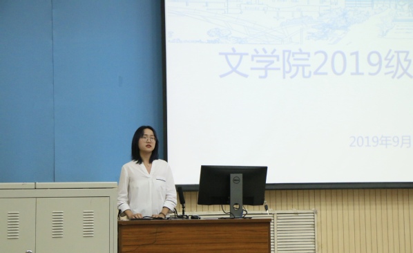 邹维忠首先介绍参会学院领导以及教师代表,并热烈欢迎各位新同学加入文学院大家庭。教师代表赵婷廷通过分享自己的大学生活经历,表达了对2019级新生的期待,鼓励新生在大学生活中树立远大目标,加强自我管理,努力争取自我发展。作为“大学长”代表,2017级英语专业的苏施雨介绍了“大学长”在学习生活等方方面面的作用,并表达了对新生们的热切关心与殷切希望。随后,2018级法学硕士研究生宋华强调在大学生活中应学会自主规划,自主发展,强化自身优势,才能在走出校门时具有竞争实力。“努力、努力、再努力是新时代的最强音;学习、学习、再学习是新时代的进军号!”她激励新生时说道。2019级新生代表汉语言专业王梓橦上台发言,她认为进入大学应先明确远大志向,不负韶华,而后还需要用刻苦与勤奋来落实。慷慨激昂的演讲表达了她对于大学生活的雄心壮志以及对在座新生的勉励。