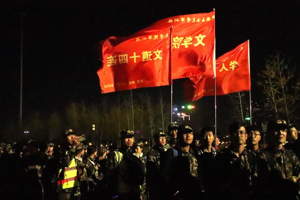 9月23日凌晨,我校2019级大一新生五千余人进行夜间拉练活动,文学院217名新生参与其中。浩浩荡荡的行军队伍从学校出发,赴唐岛湾公园大古墩战斗遗址,全程约19公里,耗时5小时。