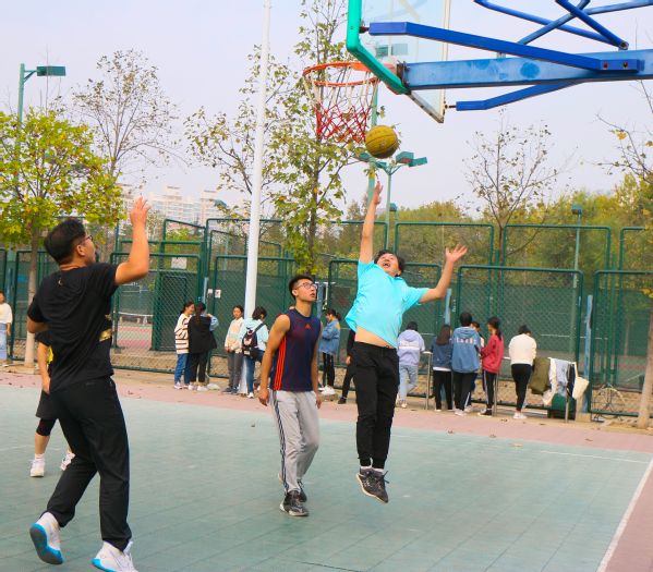 平时站在讲台上的教职工们在篮球场上展现出了活力十足的一面,在篮球场上的他们不同于在课堂上的严肃和一丝不苟,形象的转换瞬间拉近了师生之间的距离,增进了师生双方之间的感情。陈在东老师说道:“师生篮球联谊赛是师生互动交流的非常好的方式,在球场上,所有的人都只有一个身份球员,使得师生交流更平等也更有效。我希望每个同学都能培养对体育的兴趣,会终身受益,既能锻炼身体,也能调节情绪,还能有效的与人沟通交流。”研究生与本科生也跨越专业和年级的限制,以球会友,相互交流和竞争,展现出文学院学子的青春活力。这场友谊赛中,师生们赛出了水平,赛出了风格,展现了健康、和谐、积极进取的精神风貌,传递着团队合作的真谛,也给观众呈现了一场精彩的视觉盛宴。参与比赛的2019级辅导员王皓说:“师生同台竞技,不但使师生间的关系更加和谐融洽,而且也给了双方一个了解彼此的机会。这有利于后期各项工作的顺利开展,也有利于培养融洽和谐的学习和生活氛围,而这正是我们比赛的目的之一。”
