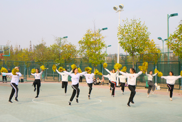 此次比赛共有四支参赛队伍,分别是文学院教职工队伍、由2019级新生组成的“星锐”队、文学院“文以载道”篮球队、由2019级研究生新生组成的全明星队。四支队伍秉承“友谊第一,比赛第二”的精神进行了三场酣畅淋漓的比拼,参赛师生们全力以赴,越战越勇,充分显示了他们对这场友谊赛的重视。运球、带球、防守、阻挡、投篮,师生们的动作标准而规范,赢得了场下观众的阵阵喝彩,现场气氛热烈。中场休息时,2019级12名新生组成啦啦操队伍为参赛队伍加油助威,助推现场高潮气氛。
