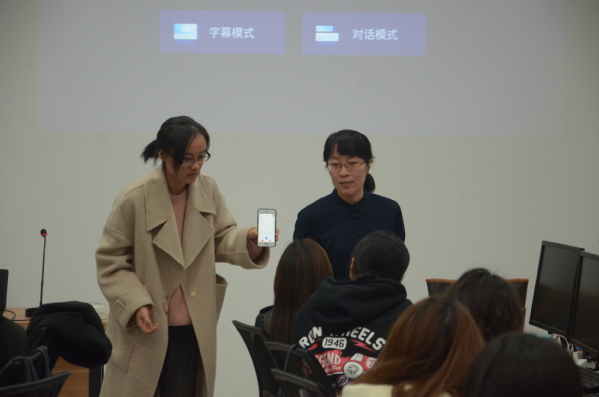 焦宗艳向同学们现场展示翻译器 唐雍祺摄
