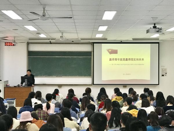 11月16日,马克思主义学院党委书记、人才发展研究中心执行主任司江伟为文学院入党积极分子培训班学员们开展了“赢得青年就是赢得现实和未来——深入学习领会习近平总书记关于青年工作系列重要讲话”为主题培训,本次课程由李俊姚主持,文学院党委副书记邹维忠出席,入党积极分子培训班全体学员、部分党员参加。