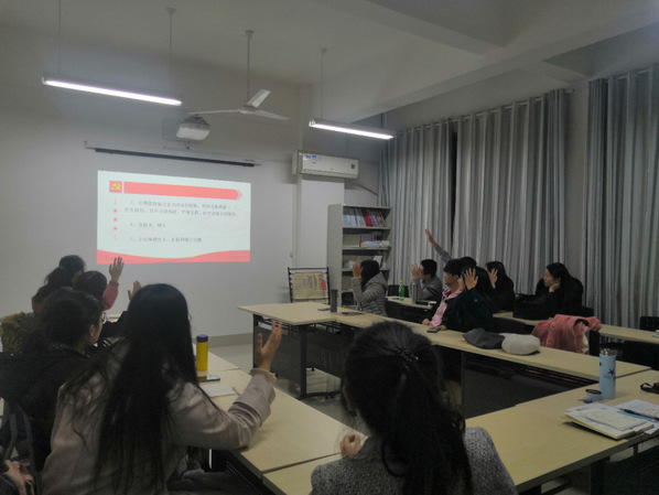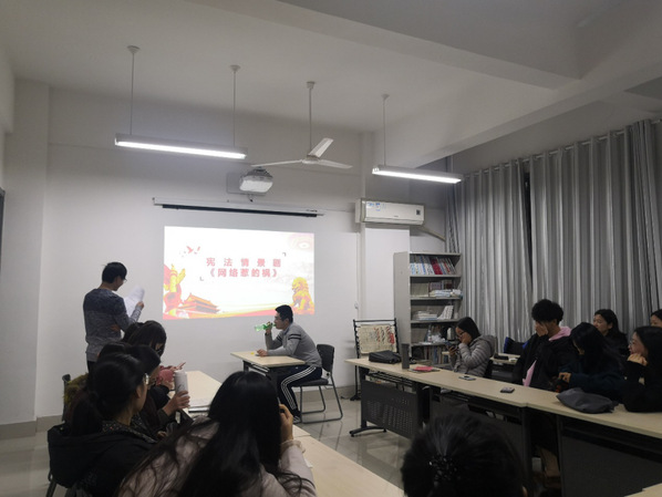 为深入学习贯彻党的十九大和十九届二中、三中、四中全会精神,全面落实习近平总书记关于宪法学习宣传教育的系列重要指示精神,进一步弘扬宪法精神,维护宪法权威,营造尊法学法守法的浓厚氛围,在第六个国家宪法日,第二个全国“宪法宣传周”来临之际, 文学院研1901班于2019年12月6日晚开展了以“学宪法,讲宪法”为主题的团日活动。活动由团支书高菲主持,研1901班全体同学参加了此次主题团日活动。