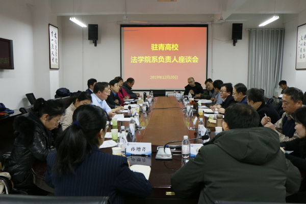 12月20日,首届驻青高校法学院(系)负责人座谈会于我院文理楼358会议室举行。此次座谈会由青岛市法学会组织和召集,旨在促进各驻青高校法学院(系)之间的交流,听取各方对营造共建共治共享的市域社会治理格局、中国—上合组织地方经贸示范区和平安青岛建设攻势等工作的意见和建议。青岛市法学会专职副会长白雪青出席会议并讲话。青岛市法学会办公室主任郑义斌主持会议。来自山东大学、中国海洋大学、青岛大学、山东科技大学、青岛科技大学、青岛农业大学、中国石油大学(华东)等高校的法学院(系)负责人以及城阳区委政法委三级调研员杨世君、崂山区委政法委副处级领导干部吴晓娟参加会议。我院王学栋院长,张永宁书记出席会议。