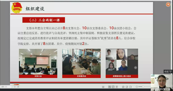 根据前期下发的通知要求,各立项支部提交了相关材料总结,按照顺序进行结项答辩。答辩内容主要围绕2019年4月立项以来各支部的建设,取得成果与未来展望等内容展开,展示了学院的团支部风采。