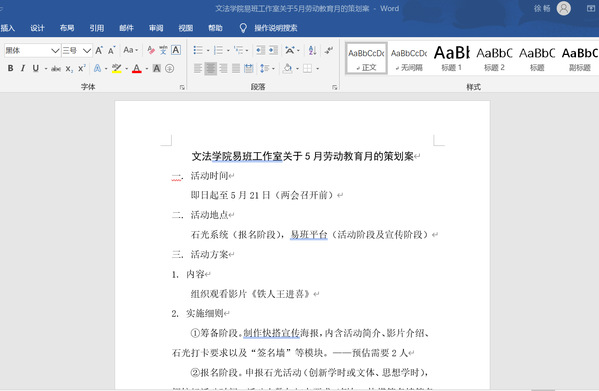 徐畅讲解关于五月劳动教育月的策划案。 徐畅 摄