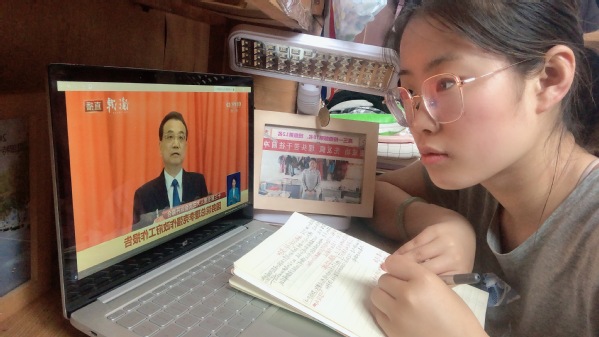 太阳成集团tyc7111cc校长奖、思美之星获得者杜楠玥在山东东营观看两会直播