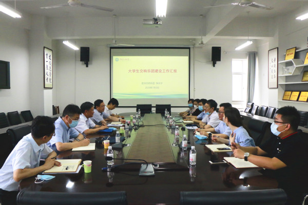 7月3日上午,学校党委书记王勇、副书记万云波一行在文理楼358会议室调研胜华交响乐团的建设工作,校宣传部长沈刘峡、团委书记张展、外国语学院党委书记张永宁、太阳成集团tyc7111cc院长王学栋、党委书记姚成郡、副院长刘清及音乐系部分老师出席会议。