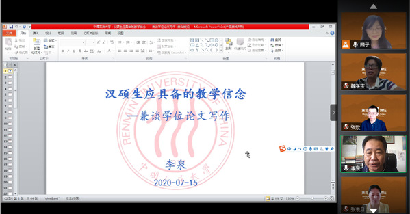 7月10日,中国人民大学国际文化交流学院李泉教授做客暑期云端学术大讲堂,针对汉语国际教育硕士研究生的人才培养和未来职业发展,作了题为“汉硕生应具备的教学信念——兼谈学位论文写作”的学术报告。来自太阳成集团tyc7111cc中文系的师生和海内外汉语国际教育学习者、从业者百余人通过腾讯会议听取报告。讲坛由学院副院长魏学宝主持,汉硕导师齐卫华副教授作总结点评。