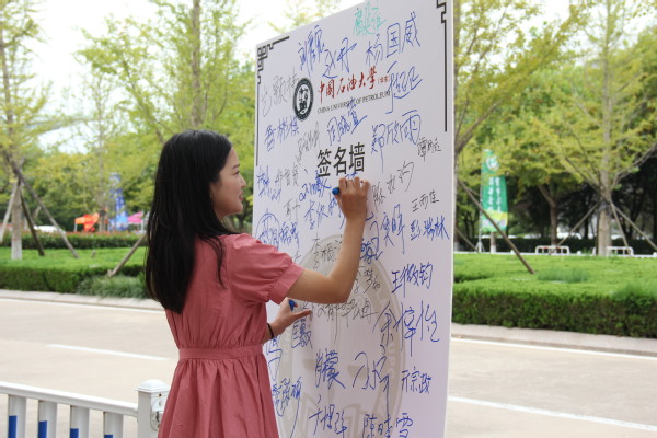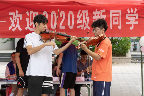 学院遵循“以生为本,热情周到,简明手续,书香氛围”的原则开展迎新工作。学院在文理楼前设置迎新场地,为了帮助新生顺利完成报到,在校门口安排了热情的志愿者引导,沿途放置了指示牌,迎新点设置有报到登记处、校园卡发放处以及绿色通道。根据学院特色,特别制作了图文并茂的宣传展板,让学生迅速了解学院概况。报到处有新生签名展板和留念照片处,为新生进入石大生活留下一个特别的印记。学院也充分发挥自身特色进行了毛笔书法展示和小提琴现场表演。俊俏挺拔的文字、优美动听的音乐引得新生驻足观赏,为他们的报道时光增添了一抹别样的光彩。