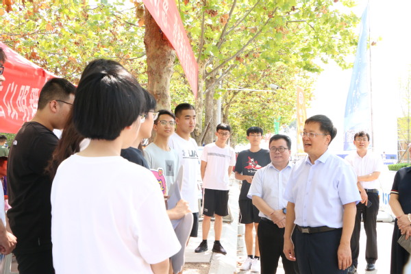 院长王学栋、党委书记姚成郡与学生亲切交流