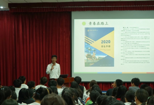 赵延升重点讲解了《学生手册》中的本科生学籍管理规定、学士学位授予办法、学生纪律处分规定、学生公寓管理规定等内容。赵延升尤为强调学术诚信的重要性,带领学生详细学习了对考试作弊者的处分规定和不授予学士学位的情况。这些内容的学习有利于新生了解大学生活,更好地遵守校纪校规,实行自我管理、自我服务、自我教育和自我监督。