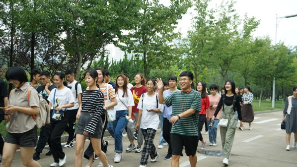 新生游园会活动将新生根据专业分成三组,分别在本专业负责人员带领下进行参观游览。首先,三组队伍在体育馆集合完毕,分别按照预定的路线进行游园活动。负责人员以文理楼、南教楼、讲堂群作为重点介绍对象,为新生详细介绍了上课教室分布情况、辅导员办公室所在地点。此外,为方便新生学习生活,负责人又为他们介绍了图书馆、餐厅、快递点、洗衣房、超市、校医院所在位置。同时,新生沿途也欣赏了学校的风景。汉语言文学专业20级新生方一杰说道:“在本次游园活动中,我对校园有了大致的了解,感受到了师兄师姐的耐心与热情,抚平了我初次踏入大学校园的紧张,也让我对未来有了更多的期待和憧憬。”