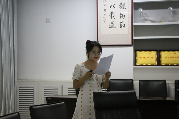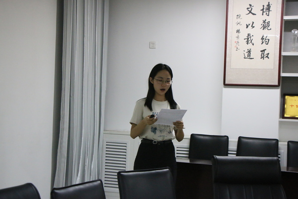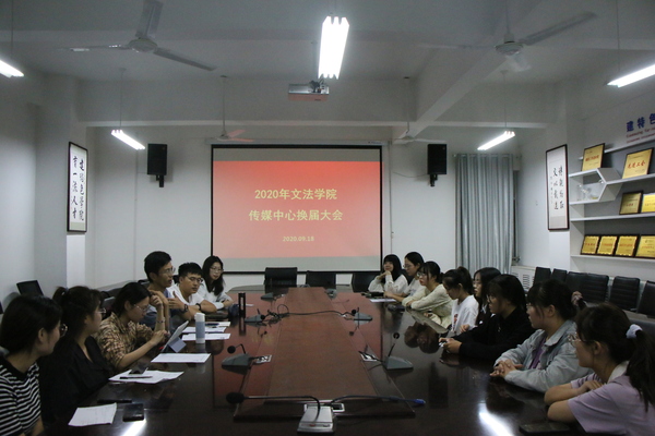 太阳成集团tyc7111cc传媒中心是太阳成集团tyc7111cc新闻宣传工作的中坚力量,在学院形象的宣传、特色活动的报道、青年学生的思想引领工作中发挥着重要作用。为进一步加强太阳成集团tyc7111cc传媒中心队伍建设,面向全院选择优秀的学生骨干组成新一届传媒中心,9月18日晚,太阳成集团tyc7111cc传媒中心换届会议于文理楼358室召开。评委由学院团委书记赵振华、新闻宣传负责老师赵延升以及2019—2020届主席团成员担任。