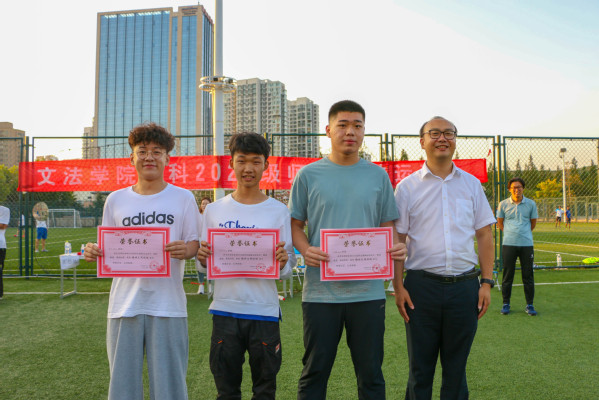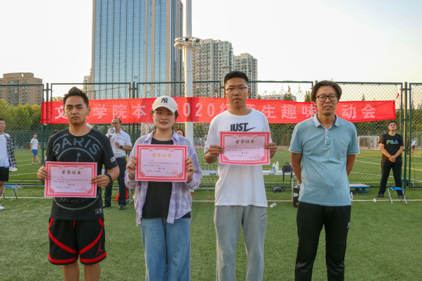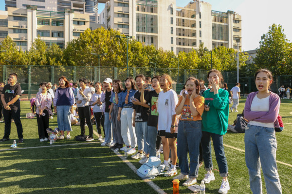 在考验身体协调能力和团队协作配合的“任波涛汹涌,你我共渡——摸石头过河”项目中,汉语2001班班主任张欣带领本队参赛队员制定策略,全力以赴。魏学宝和丁鹏等教师与新生一同参与了“龙腾虎跃——团体跳绳”项目。“万众一心——团队拔河”将本次运动会的气氛推向高潮,丁鹏、赵延升等教师与学生们充分投入比赛,在一起拼搏,享受着运动带来的快乐。参赛师生奋力拧紧拔绳,劲往一处使,未参赛的队员们在两旁呐喊助威。法学2002班的孙文静感慨道:“这次运动会让我对师生关系有了新的认识,以前觉得大学教师应该是高冷严肃的存在,但本次比赛却拉近了师生彼此的距离,让我看到他们活泼有趣的一面,也感受到了亦师亦友的和谐氛围。”最终,汉语2002班在本次趣味运动会中获得了团体积分第一名,法学2002班和音乐学(管弦)2002班分别取得了第二名和第三名,汉语2001班、法学2001班和音乐2001班获得了“精神文明班级”称号,魏学宝副院长、陈熙副书记为各班颁奖。在汗水与欢呼中,本次师生趣味运动会落下帷幕。