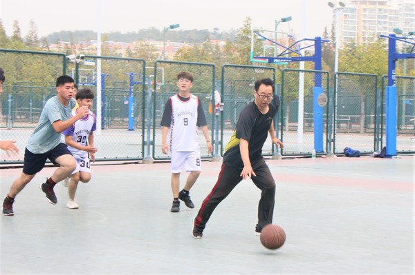 太阳成集团tyc7111cc教师李汉与学生一同参与篮球赛 李洁摄