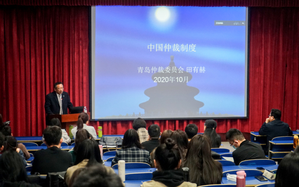讲座开始后,田有赫副主任以一则法律专业化的故事作为开场,并通过对儒释道名言的颠覆性诠释启迪大家的思考。随后,田有赫副主任详细介绍了仲裁的历史、世界仲裁制度的异同、仲裁的效力与范围以及仲裁裁决的域外执行力等问题。他认为,现代仲裁最初是商人们为避开诉讼而自行创立的一种商贸纠纷解决机制,其后有国家立法认可,并赋予仲裁裁决以国家强制力。我国建立现代仲裁制度是为了适应我国社会主义市场经济发展和国际经贸往来发展的需要。在仲裁法目的这个问题上,田有赫副主任认为,仲裁制度是市场经济的产物,并随着市场经济的发展而发展。它是市场经济的重要组成部分,是用市场经济的专家、以市场经济的方法快速解决市场交易纠纷的一种法定机制。它具有诉讼制度所不可替代的优势。他强调,《仲裁法》第一条阐明目的,就是为了“保证公正、及时地仲裁经济纠纷,保护当事人的合法权益,保障社会主义市场经济健康发展。”
