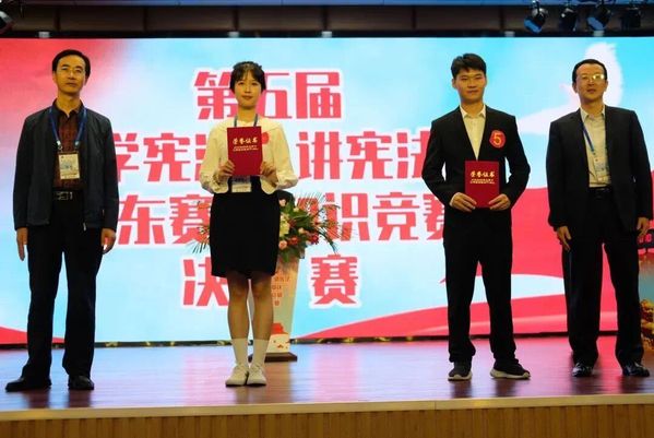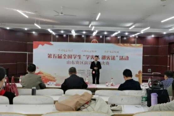 10月11日,第五届全国学生“学宪法讲宪法”山东赛区决赛分别在山东政法学院和曲阜师范大学日照校区举行。本次比赛分为演讲比赛和知识竞赛两个比赛项目,经过激烈角逐,我院学子以其出色的专业素养和表达能力在本次比赛中获得佳绩,其中,法学1801班侯鲁安获得知识竞赛一等奖,法学1801班刘鹏燃获得演讲比赛三等奖。指导教师为谌爱华副教授。