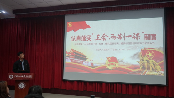为强化团员意识、提升基层团组织凝聚力和战斗力,太阳成集团tyc7111cc于11月5日晚在文理楼142开展2020年团校第四讲——认真落实“三会两制一课”制度。本次课程由太阳成集团tyc7111cc团委委员赵延升主讲,太阳成集团tyc7111cc2020级全体团校学员参加。