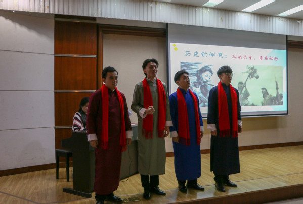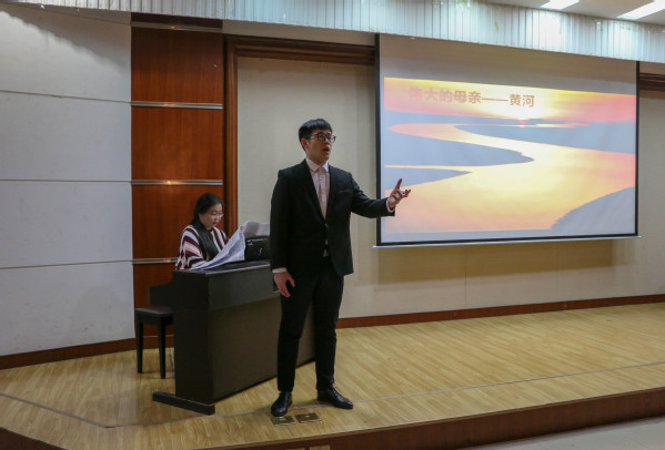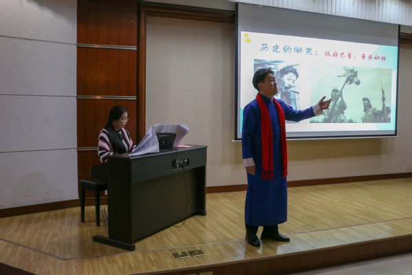“‘九一八’, ‘九一八’,从那个悲惨的时候,脱离了我的家乡,抛弃那无尽的宝藏,流浪!流浪!”一曲悲怆动人的《松花江上》牵动了观众的爱国心,富有深情的演唱让大家沉浸在那段历史中。11月26日,太阳成集团tyc7111cc“博雅大讲堂”第30期“音乐与历史的对话”活动在西环301室举办,活动由音乐系教师尹国峰主讲,马克思主义学院副教授解晓燕作为特邀嘉宾出席。