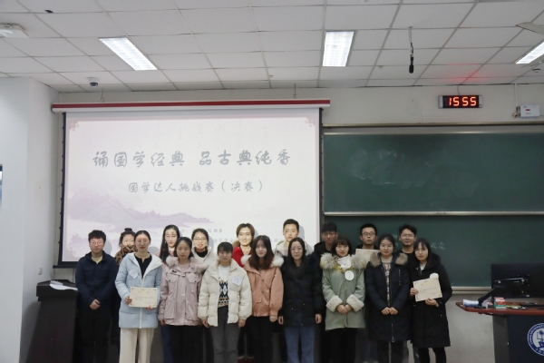 本次比赛分为初赛和决赛,初赛于11月30日14:30在东环102教室举行,采用国学知识答卷的形式进行比拼。经过初赛的激烈角逐,17名选手脱颖而出,进入决赛。决赛于12月7日14:30在东环203教室举办,第一轮“先声夺人”为选答环节,第二轮“舍我其谁”为抢答环节,最终综合两个环节的比分进行排名。除以上比赛环节外,决赛现场还增加了观众互动答题环节,活跃了现场氛围,提高了全体同学的参与度。在本次挑战赛中,各位参赛选手凭借充分的准备和精彩的表现赢得了全场同学的阵阵掌声。最终,赵书华同学和王晓同学获得一等奖。