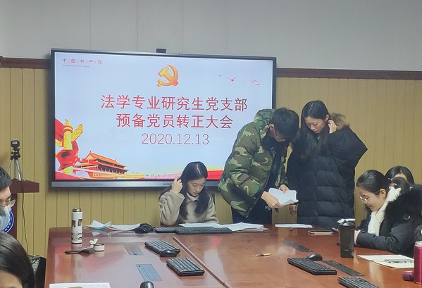 12月13日下午,法学专业研究生党支部于文理楼304召开了预备党员转正支部大会,会议由党支部书记孙雪主持。