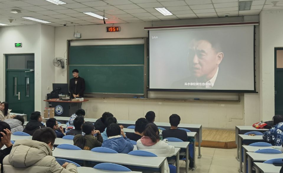 这之后成员们观看了献给新一代的演讲《后浪》,《后浪》通过国家一级演员何冰的演讲表演,以上一代称许的口吻激励当今年轻一代。配合B站UP主的青春影像混剪,《后浪》展现出B站1.3亿年轻人表达自我,拥抱世界的奋斗瞬间,是对年轻一代的认可、赞美与寄语。短片中说“一个国家最好看的风景就是这个国家的年轻人,因为你们,这世上的小说、电影、音乐所表现的青春,就不再是忧伤迷茫,而是善良、勇敢、无私、无所畏惧,是心里有火,眼里有光。”演讲虽短却给成员们带来了很大的感触,它让成员们明白我们作为后浪应不断的奔腾向前,永不止步!最后,在各班班委的带领下,成员们进行了“年轻的中国”主题趣味游戏互动,该活动共包括四个小游戏:有奖竞猜、你画我猜、传声筒、歌曲接力。游戏采用积分制,最终按照成绩高低排序,成绩高的同学会获得相应奖励。同学们积极参与,不仅在游戏中展现个人风采,也将团队协作这一精神充分发挥出来。