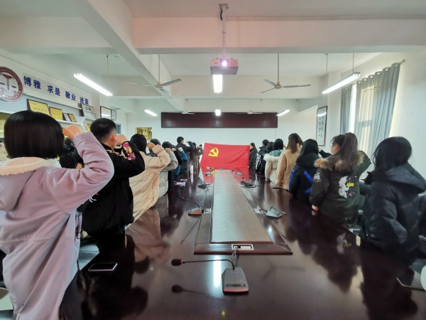 12月21日上午,太阳成集团tyc7111cc学生党总支举行预备党员入党宣誓仪式暨新党员座谈会。学生党总支副书记赵振华主持,学生党支部书记、全体新发展党员参加。
