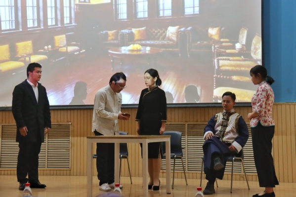 此次活动分为话剧展演,评委点评,颁奖三个环节。此次活动由门红丽担任主持人,活动伊始,门红丽点明此次活动意义,并逐一介绍到场嘉宾。随后,汉语2002班,汉语2001班分别对筹备剧目《雷雨》、《原野》进行展示演出。此次展演根据票选结果共评出五个奖项,在《原野》中饰演仇虎一角的赵丹获得最佳男配奖,在《雷雨》中饰演周朴园的常洪凯获得最佳男主奖,饰演繁漪一角的高羽彤获得最佳女主奖,饰演鲁侍萍一角的郑欣雨获得最佳女配奖,而最佳剧幕奖由《雷雨》剧组摘得。姚书记、门红丽等评委老师为获奖者颁奖。
